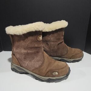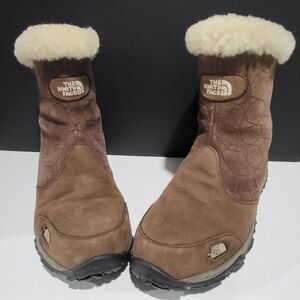 North Face women's brown suede winter boots. Size 9. Zips up in the back. Primalof 200 gram insulation. Waterproof. INF winter grip.