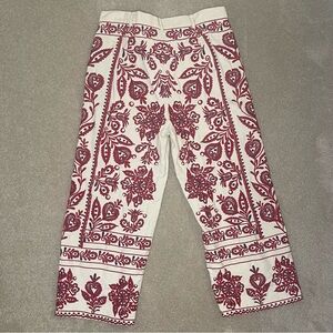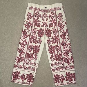 Zara Red and Tan Wide Leg Embroidered Cropped Capri Pants