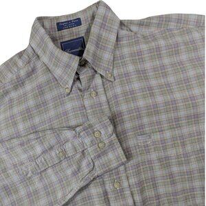 Faconnable Nordstrom Shirt Mens M Blue Green Plaid Long Sleeve Office Preppy