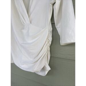 Soft Surroundings Ivory Pearl Alondra Knit Top I Vneck Shirring Shirt Womens Med