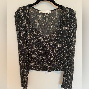 ASTR The Label puff-sleeve top patterned in romantic blooms and styled with a twisted detail at the front.