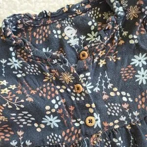 dark navy floral, wood buttons