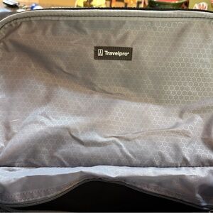 Lightweight/compact carry on bag designed for travel. Sleek and durable, unisex bag is perfect for all your travel needs. Featuring a classic black design, this bag combines style with functionality. Under seat capability. Features quick access front flap, roomy interior and several built in pockets for organizing essentials. Resists moisture, stains and abrasion. Dimensions 16” X 12”. Clean EXCELLENT shape. Only used a couple of times.
