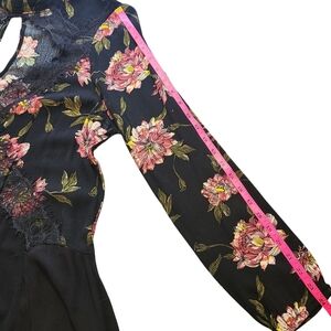 Daytrip Black Floral Lace Cutout Blouse Women’s Size Large Long Sleeve Peplum