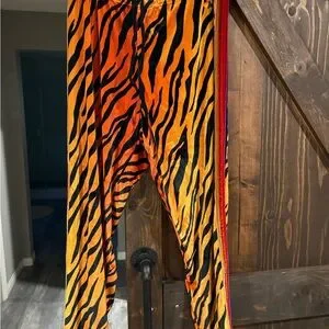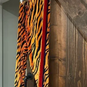 Striking orange and black striped pants. Perfect for a bold look.