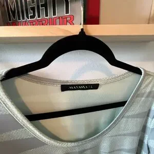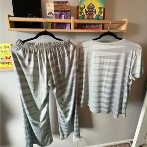 Stylish gray striped pants and top set. Comfortable and chic. Perfect for casual wear.