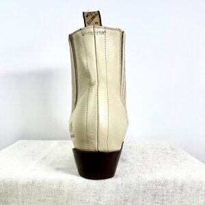 Step into timeless craftsmanship with these El Canelo Ivory Leather Ankle Boots for men. Handcrafted in Mexico, these boots feature a sleek pointed toe, rich cream-toned genuine leather, and classic Charro styling. The elastic side panels and rear pull tab offer easy slip-on access, while the dark brown sole and low heel add contrast and durability. Perfect for Western wear enthusiasts, collectors, or anyone seeking a refined boot with heritage flair.