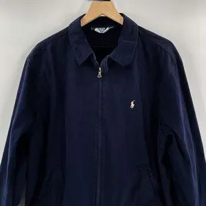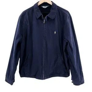 Vintage Polo Ralph Lauren Bomber Jacket Full Zip Up Front Coat Large Blue