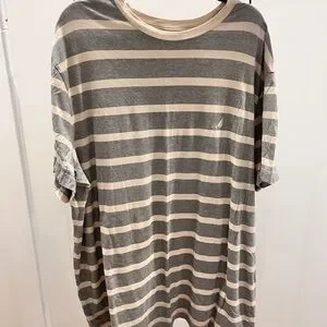 Nautica Gray and Cream Striped Short Sleeve Tee