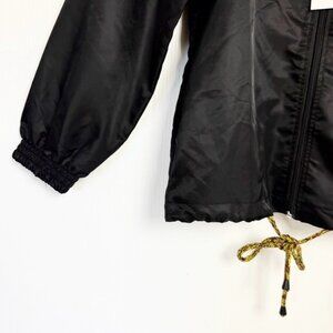 The Stockholm-based label wants you to face yourself, or at least the blustery weather, in signature minimalist-cool style with this recycled-nylon jacket. A drawstring hood, elastic cuffs and cinchable hem help keep out chilly breezes, while Acne's simple representation of a Swedish citizen is filled with pride while keeping an even-keeled expression on the back.