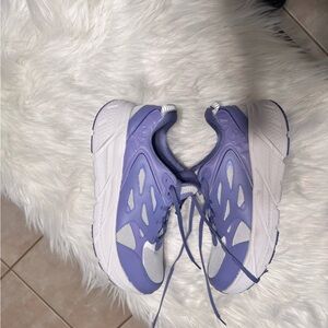 Hoka One One Clifton Athletics shoes in a soothing lavender shade. Perfect for comfort and style.