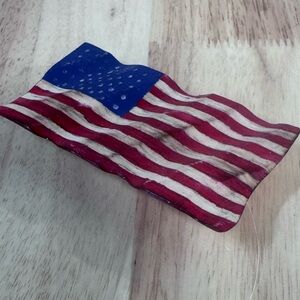 Beautiful hand carved and hand painted American flag magnet, handcrafted in the USA. Each piece features a rustic, slightly wavy design that highlights the artisan-made character—no two are exactly alike.