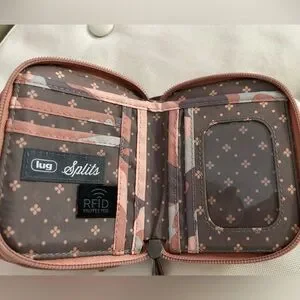 Stylish quilted wallet by Lug. Features a unique camouflage pattern. Compact and functional design.