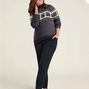 Cozy turtleneck with a striking pattern. Perfect for warmth and style.