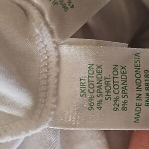 Vibrant skirt with tropical print. Features blue and green hues. Perfect for a sunny day.
