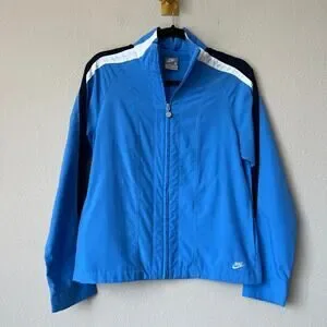 tags: Nike, vintage Nike jacket, Nike track jacket, retro windbreaker, full zip athletic jacket, Nike sportswear, Y2K Nike, blue zip jacket, retro sporty style, lightweight jacket, Nike stripe jacket, streetwear, unisex Nike