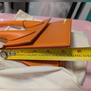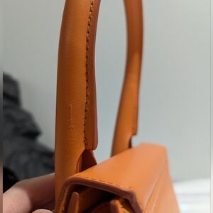 Classic Jacquemus bag. Please note, this bag is new, never used, but I did note some small irregularities and tried to take pictures. You will see that there appears to be some glue or something on the back of the handle and under the bottom of the flap on the corner.