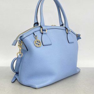 Gucci Interlocking G Handbag 449651 Leather Blue Champagne 2-Way Bag for Women