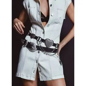 RARE Vintage Cache Streets Ahead Mia Heart Chain Leather Croc Belt