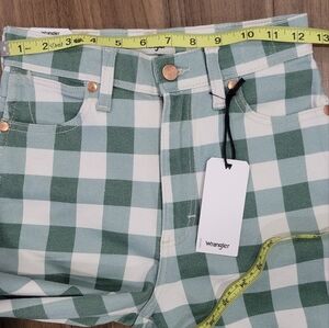 Wrangler Wrock 672 Gingham Kick Flare Green Plaid Checkered Pants Size W25