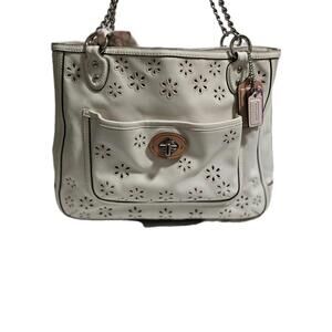 Coach Leather Limited Edition Poppy Eyelet Chain Tote Shoulder Bag White. With Coach Scarf and Tags. Pre-owned and in Excellent Condition.