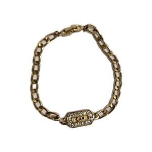 Vintage Christian Dior Logo Gold Plated Rhinestone 7" bracelet.