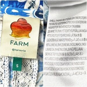 FARM RIO Linen Floral Paisley Puff Sleeve Ruffle Lace V-Neck Tie Belt Jumpsuit S