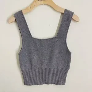 H&M Knit Wool Blend Cropped Sleeveless Top Gray Square Neck S