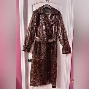 Fashion Nova Leopard Print Trench Raincoat Size XL