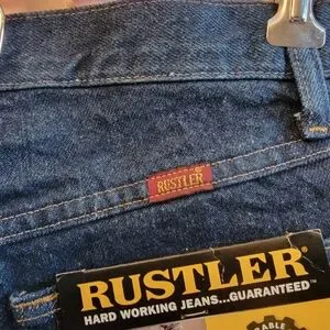 New with tags, Vintage Rustler by Wrangler, Mens Size 29"x30" Regular Fit Straight Leg Jeans. Heavy Weight, Durable Deep Blue Denim.