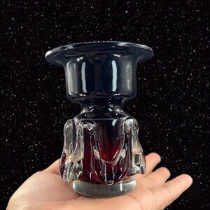 Polish Art Glass Red W Clear Swirls Vase Single Candle Holder From Poland VTG
