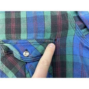 VTG Melton Wintermaster Flannel Shirt Large Blue Green Buffalo Check Lumberjack