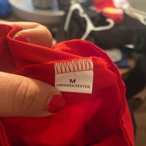 Get your little one ready for action with this vibrant racing-themed shirt. Featuring a bold red and black design with checkered patterns, it's perfect for young racing enthusiasts. It’s a Medium but I bought it for my 6 year old boy’s birthday. He was 5t at that time.