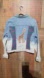 Stylish denim jean jacket featuring a unique giraffe embellishment. Perfect for adding a touch of flair to your wardrobe. The light blue color pairs well with any outfit.
