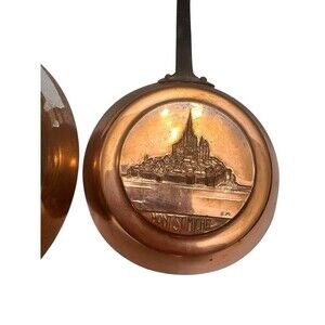2 Small Vintage Copper Pans French Mount St Mitchel Decorative Rustic Kitchen