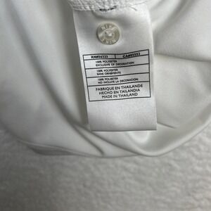 Crafted for comfort and mobility, the Nike Performance Men's Polo Shirt in size XL is a versatile addition to your activewear collection. Whether you're hitting the tennis court or the golf course, its 100% polyester fabric provides a breathable fit that moves with you. The shirt's crisp white hue is accented by the iconic Nike swoosh, offering a clean and sporty look.