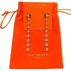 Kurt Geiger London NWT gorgeous Micro Eagle Crystal Linear Drop Earrings with jewelry pouch and Kurt Geiger London mission statement/care card.