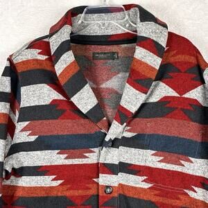 Junk Food Cardigan Sweater Mens XL Gray Red Fleece Aztec Southwestern Western