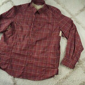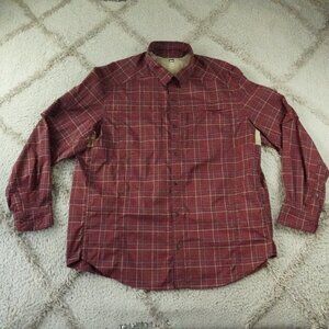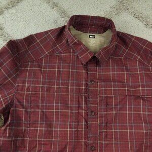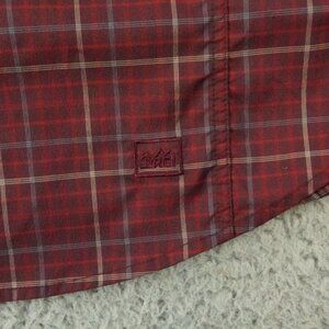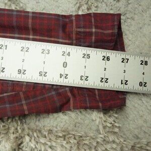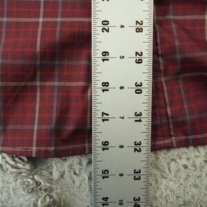 Stylish red plaid shirt. Button-down design. Perfect for casual wear.