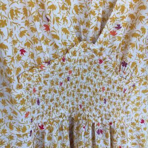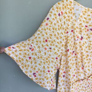 Free People Full Bloom Dress XS Floral Smocked Midi V-Neck Boho Cottage