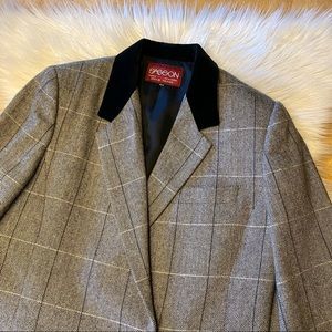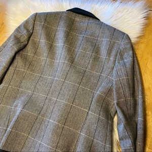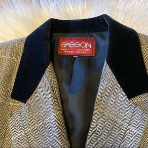 Vintage 90s Sasson Herringbone Wool Short Blazer Black Velvet Collar S