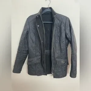 Women's Barbour Cavalry Black Polarquilt Quilted Jacket size 10 M/L Zip Pockets