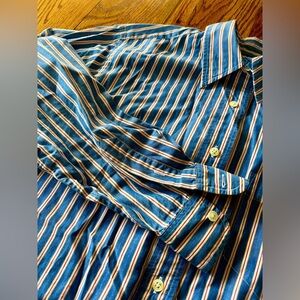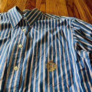 Lauren Ralph Lauren Women’s Size 10 Embroidered Crest Logo Striped Cotton Shirt