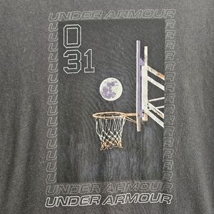 Stylish Under Armour tee with basketball hoop graphic. Soft fabric for comfort. Ideal for sports and casual wear. Size Med