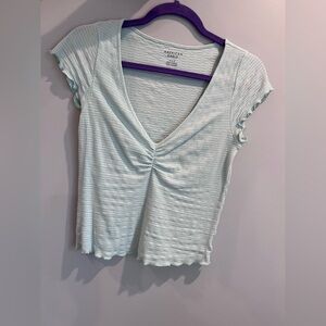 American Eagle Cinch Front Hey Baby Tee Light Blue Size Medium NWOT