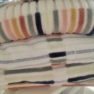 Enhance your bathroom with this vibrant striped bath towel set. Featuring a blend of colors, these towels add a touch of elegance and style to your home bath.