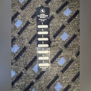 The Hart Schaffner Marx Sweater is a stylish and comfortable men's pullover made from a merino wool blend in a geometric gray color. This crew neck sweater features a regular fit and lightweight knit fabric, making it perfect for the winter, fall, and spring seasons. The high-quality materials and craftsmanship of this sweater make it a versatile and fashionable addition to any man's wardrobe, ideal for adding a touch of sophistication to any outfit.