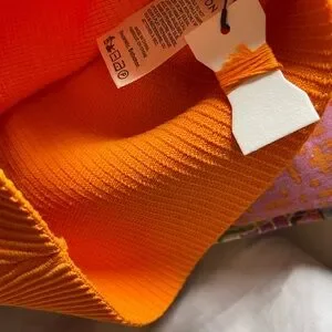 Vibrant orange. Wonderful fit.,Don’t need bra. This is NWOT Fabulous piece any season.