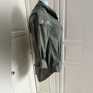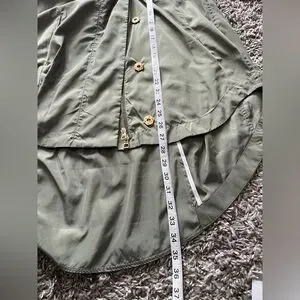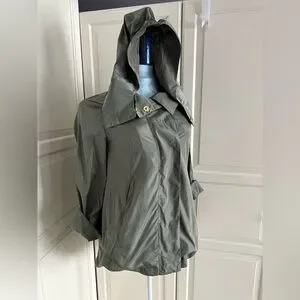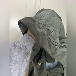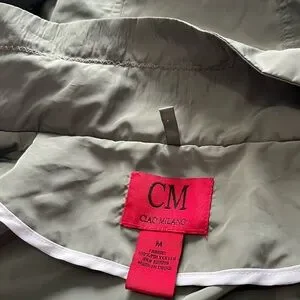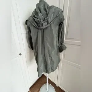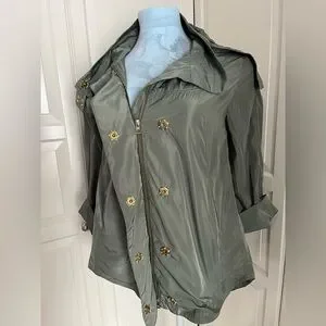 NWOT. Ciao Milano rain jacket with pockets. Both zips and snaps. Hi-Lo hem. Measures 22 inches pit to pit, see pictures for additional measurements. Has a detachable hood with nice stay put elastic in the hem. Sleeves can be let down or rolled and snapped up. Smoke free home.