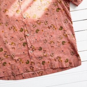 Naked & Famous men's rust orange floral linen short sleeve shirt size M